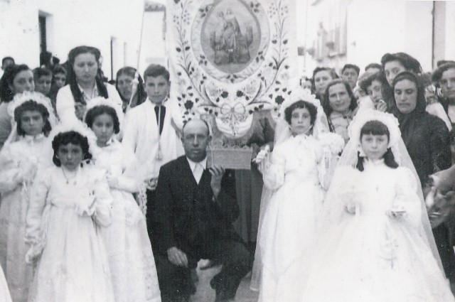 ESTA FOTOGRAFÍA REPRESENTA LAS COMUNIONES DE LOS AÑOS 50, EN LA PROCESIÓN DE LA VIRGEN DEL CASTILLO.