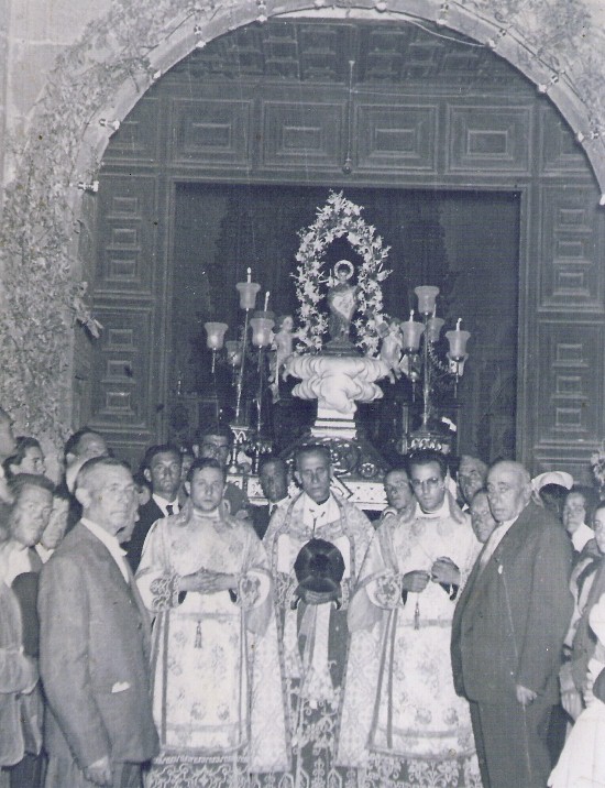 SAN ANTONIO DE PADUA SALIENDO DE LA IGLESIA HACIA SU PROCESIÓN ALLÁ POR EL AÑO 1951.
