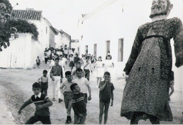 EN ESTA FOTOGRAFÍA SE REPRESENTA LA DIANA POR LAS CALLES DEL PUEBLO, ACOMPAÑADA POR LOS GIGANTES Y CABEZUDOS QUE A TANTOS NIÑOS GUSTABA.