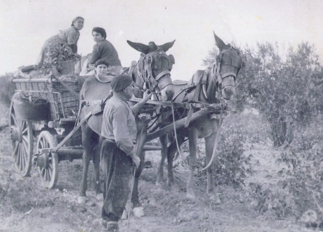 EL ACARREO DE LA UVA ERA UNA FAENA EN LA QUE QUE LAS MULAS ERAN LAS PROTAGONISTAS. EN LA FOTO, OLIVERIO LAS SUJETA PARA QUE NO ECHEN A ANDAR ANTES DE TIEMPO.