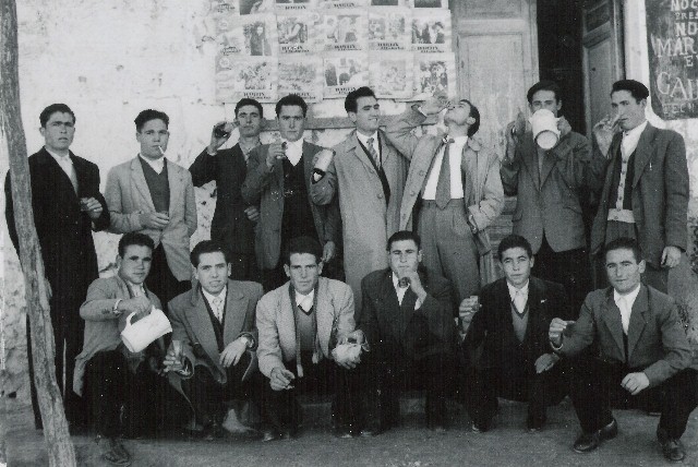 UNA FOTOGRAFÍA MUY ESPECIAL ES ESTA DE LOS QUINTOS DEL 56, PUES ESTÁ HECHA EN LA PUERTA DEL CINE DE NUESTRO PUEBLO. LUGAR DE DIVERSIÓN Y REUNIÓN DE JÓVENES, MAYORES Y NIÑOS POR AQUEL ENTONCES.